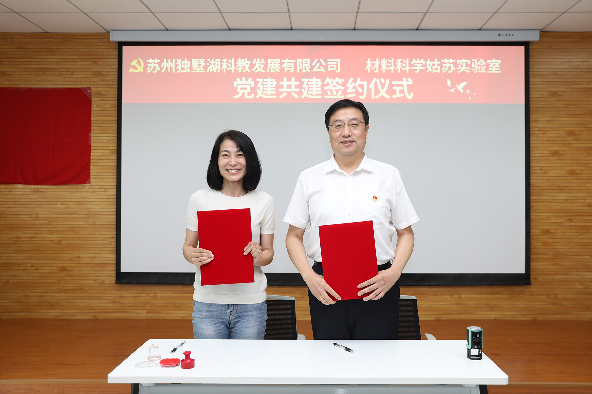 之后,举行了党建共建签约仪式,总支副书记于年中与独墅湖科教发展有限公司党总支副书记戚瑶亮代表双方签署协议,以党建为引领,围绕平台共筑、资源共享、发展共谋划等方面内容开展广泛深入合作。