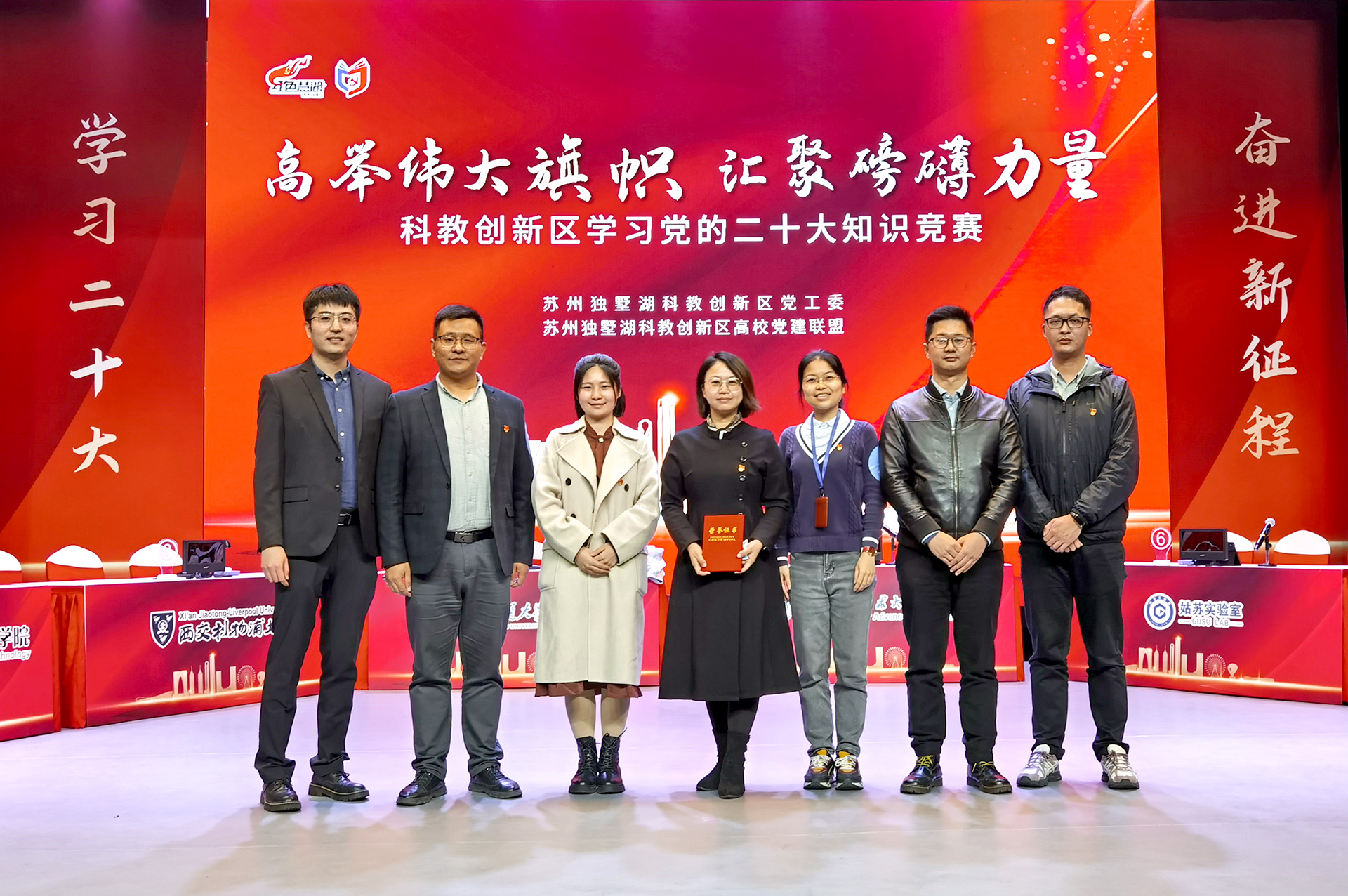 为深入学习贯彻党的二十大精神,提升学习成效,11月23日下午,姑苏实验室党总支代表队参加独墅湖科教创新区党工委举办的高校党建联盟学习党的二十大精神知识竞赛活动。