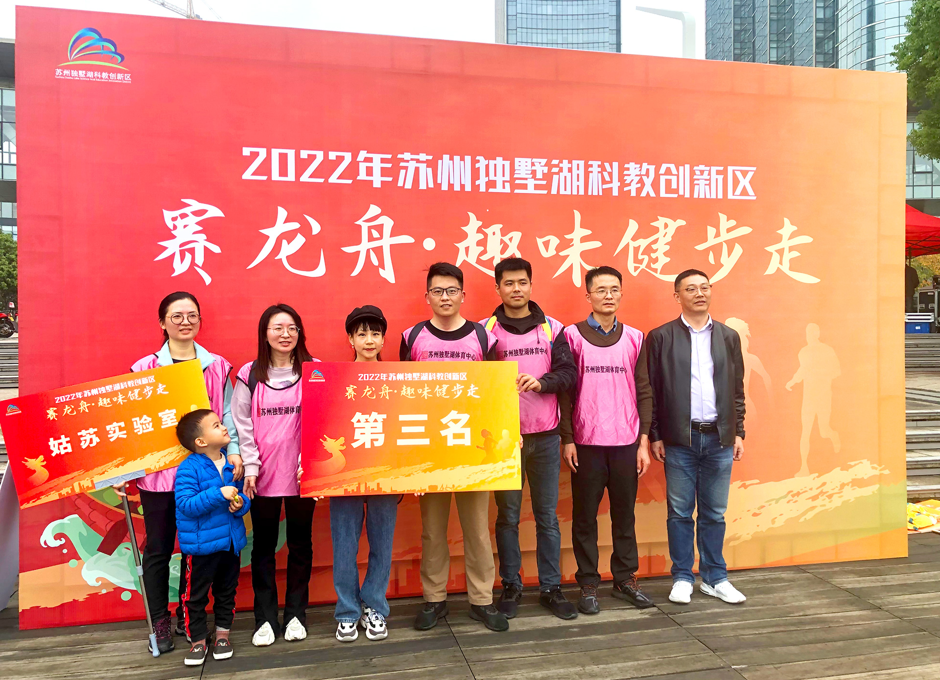 11月19日上午,姑苏实验室工会代表团受邀参加了独墅湖科教创新区工会联合会举办的“金秋赛龙舟、趣味健步走”工会活动。姑苏实验室组织六名队员参加了“趣味健步走”?;疃己?,队员相互协作、一路向前,顺利完成4个卡点的任务,展示了积极向上的精神风貌,并获得了团体第三名的成绩。