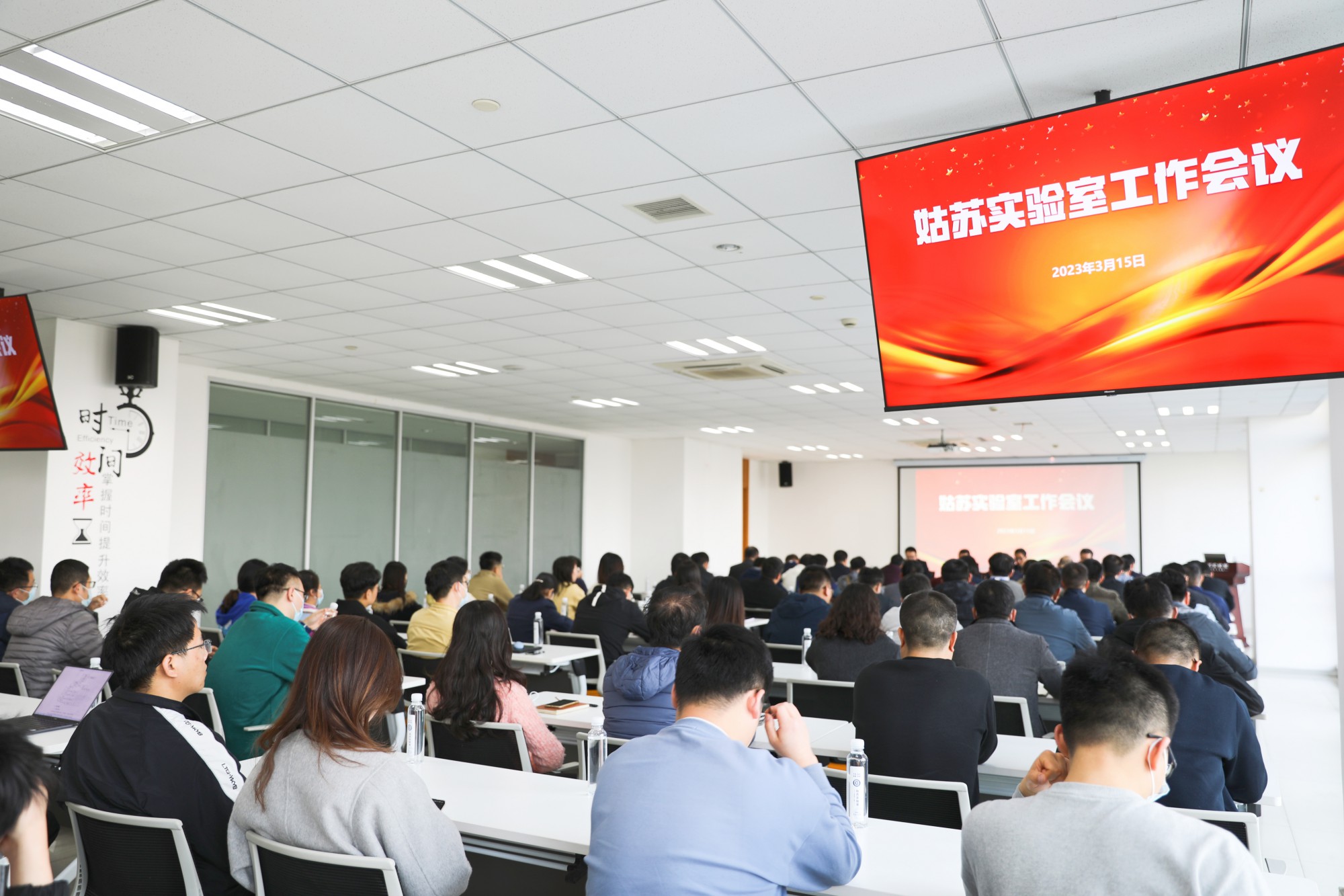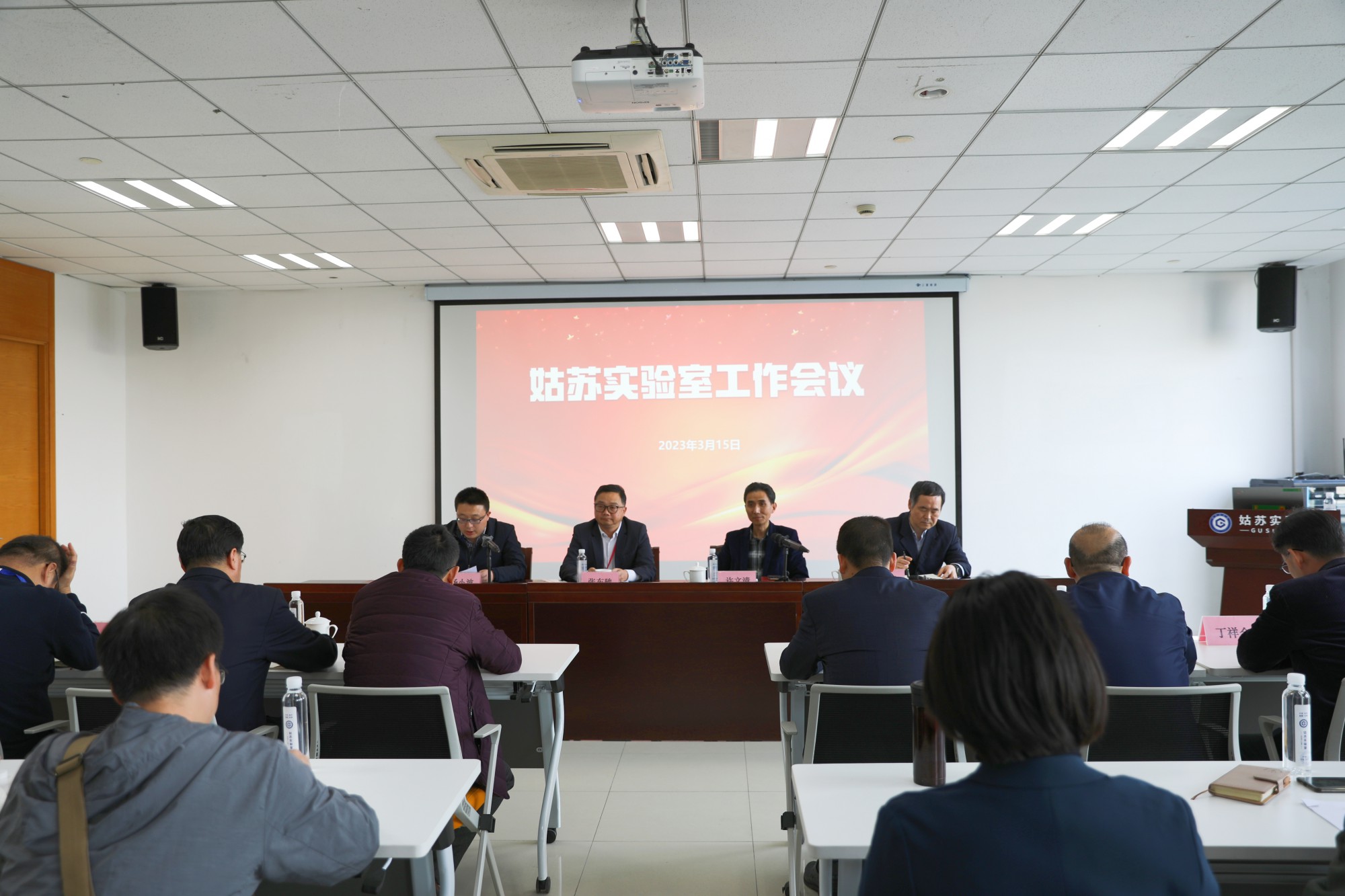 三个新成立部门的负责人分别作了表态发言。姑苏实验室中层以上人员,科研、管理人员代表参加会议。