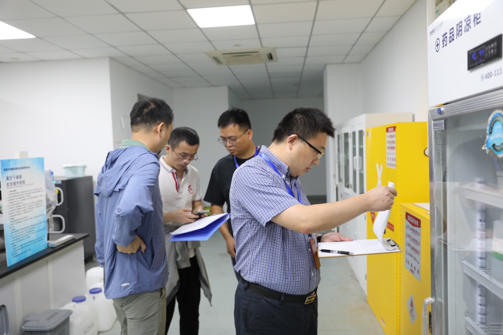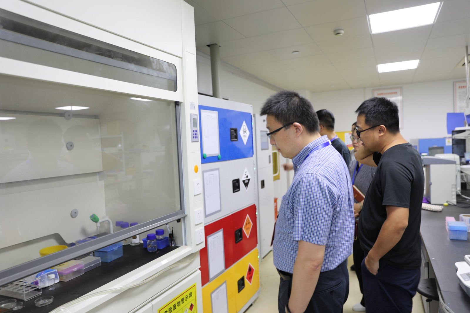 检查组重点对涉及危化品、特种设备、辐射安全的实验室等设施设备进行检查并查阅了相关台账资料,及时指出检查中发现的问题和隐患。根据现场检查情况对安全生产工作提出了三点要求:一是提高思想认识,坚持安全底线,各项目组切实做到责任到位;二是立行立改,强化管理措施,持续做好各项安全自查工作,加强现场巡查;三是加强假期值班值守,确保假期安全稳定。