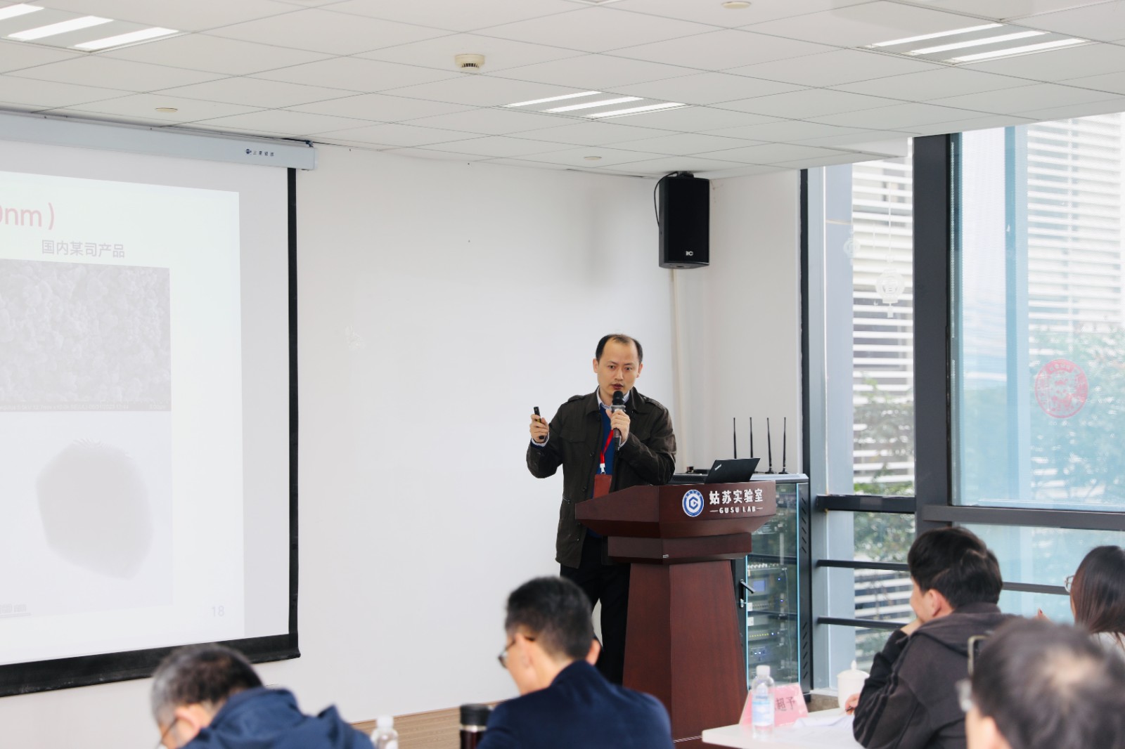 活动分为两个阶段,第一阶段是11月2日实验室组织技术、融资、人才申报、团队管理等资深专家通过线上线下交流的方式,对路演项目BP进行辅导和完善;第二阶段是项目负责人现场向投资人阐述项目亮点、发展前景和融资需求等,并进行深入交流。本次路演项目涉及纳米钛酸钡产品、离子注入机、特种工程塑料聚醚酮酮、超声微反应器设备、气凝胶等多个领域。