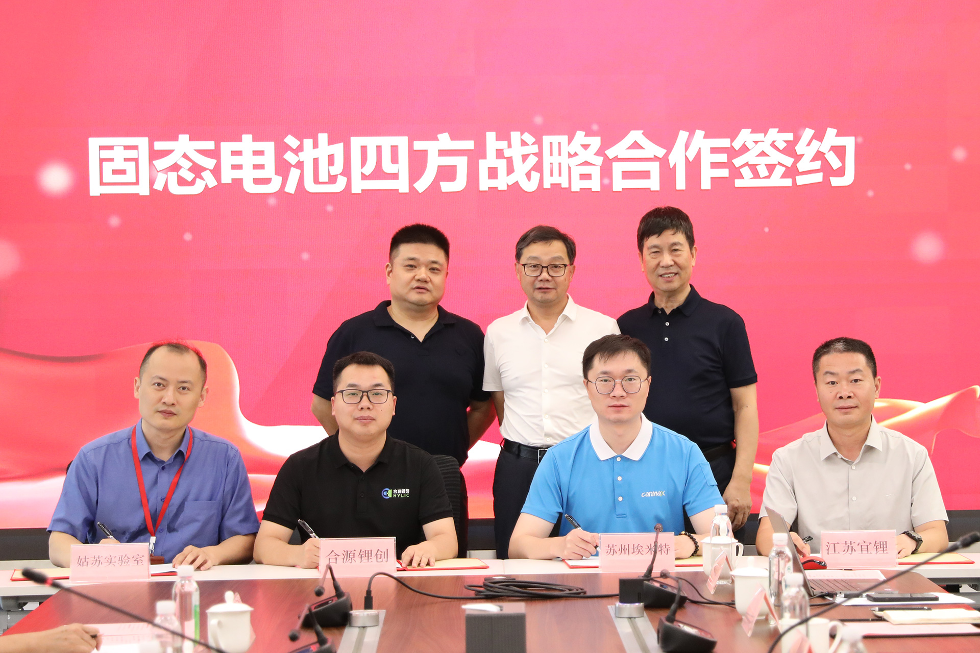 7月29日,姑苏实验室、合源锂创(苏州)新能源科技有限公司、苏州埃米特材料科技有限公司、江苏宜锂科技有限责任公司四家锂电池产业上下游的科研院所与企业,在姑苏实验室签署《固态电池四方战略合作协议》。