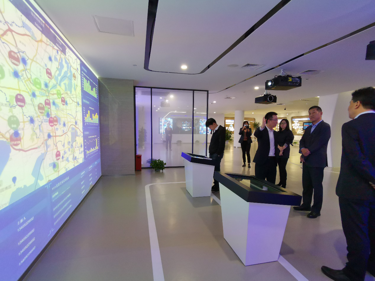 同日,在签约仪式前,朱斌晨行长陪同杨辉主任一行参观了中国建设银行苏州分行创新实验室,全面了解行史发展、楼盘大数据、智慧政务、住房租赁、普惠金融等各业务板块产品研发情况,副行长陈建平作深入讲解。
