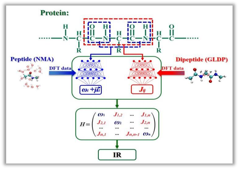 为了解决蛋白质光谱快速精确模拟的难题,研究人员结合了量子化学计算和人工智能(AI)技术,发展了一套可高效模拟蛋白质紫外和红外光谱的计算方案,前期成果于2019年和2020年,分别发表在国际知名期刊《美国国家科学院院报》(Proc. Natl. Acad. Sci. U.S.A. 116 (2019) 11612-11617.)和《美国化学会志》(J. Am. Chem. Soc. 142 (2020) 19071-19077)上。