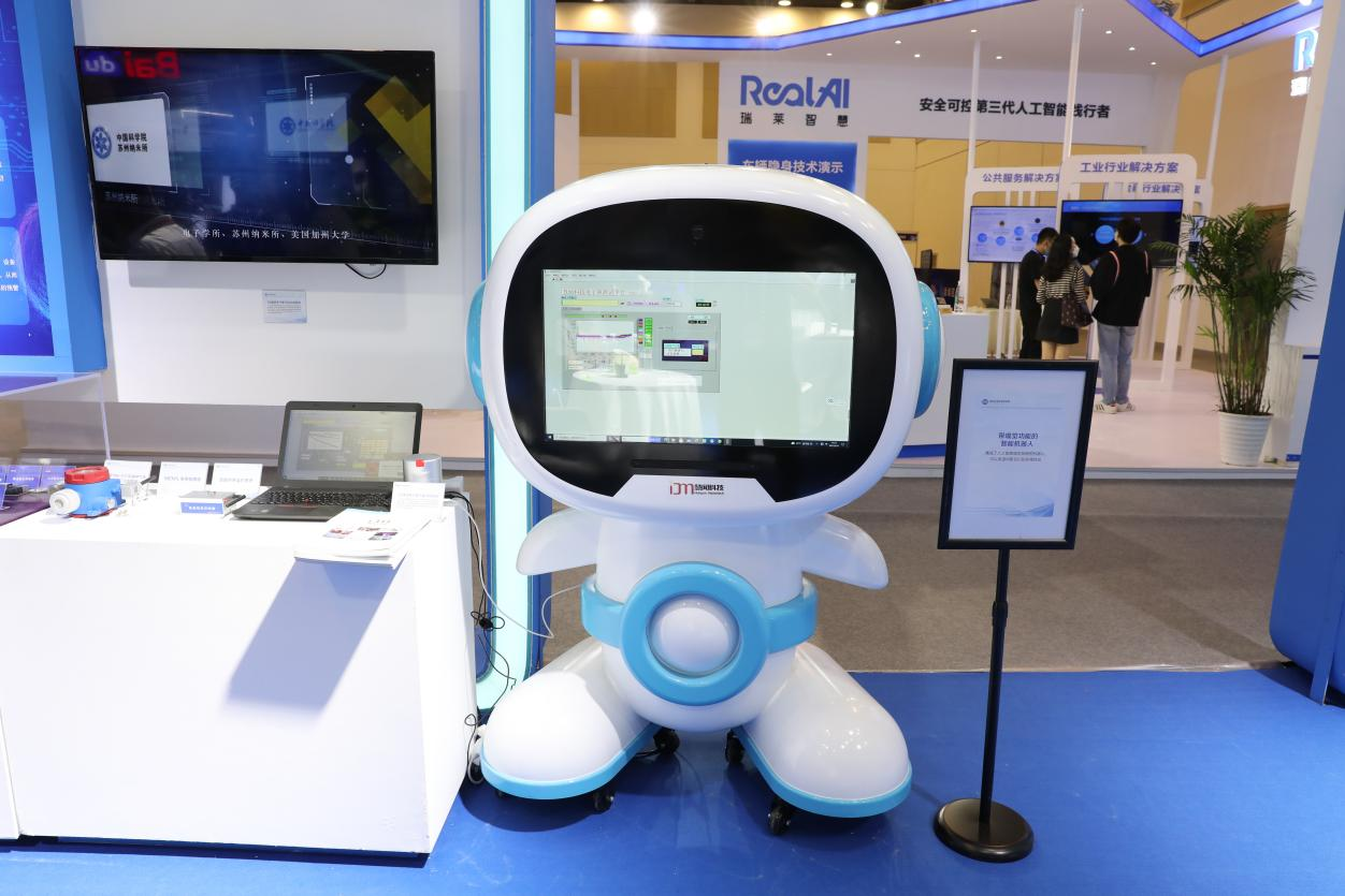 能闻出味道的机器人你见过吗?姑苏实验室展台上一个超大的卡通版机器人吸引的众多参展者的关注。G2119项目展出的集成了人工智能嗅觉系统的机器人,可以快速判断并识别周围环境的状况,它所承载的秘密武器就是这些指甲盖大小的芯片里面。每个气体传感器上遍布多个通道,上面涂有纳米材料,不同气体飘过来吸附在材料上,再通过人工智能技术进行记忆和分析,未来再遇到相同气体就能自动识别是什么气体以及气体的浓度。这类设备可普遍应用于家庭、工厂、商业等场所的有毒有害或者可燃气体的探测。 如空气净化器、智能穿戴、便携检测仪中的空气质量检测;可燃气体泄漏报警器、燃气热水器、抽油烟机等可燃气体检测等。