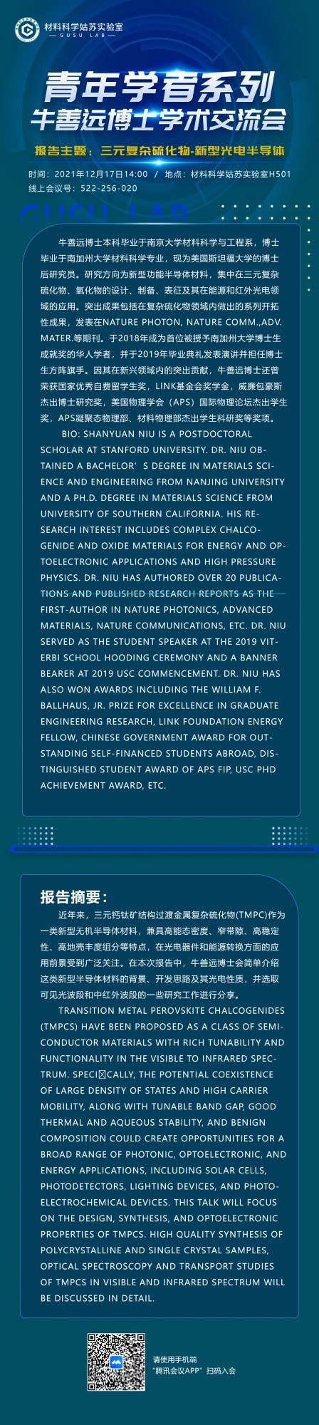 活动预告|青年学者系列学术交流会第二期——牛善远博士