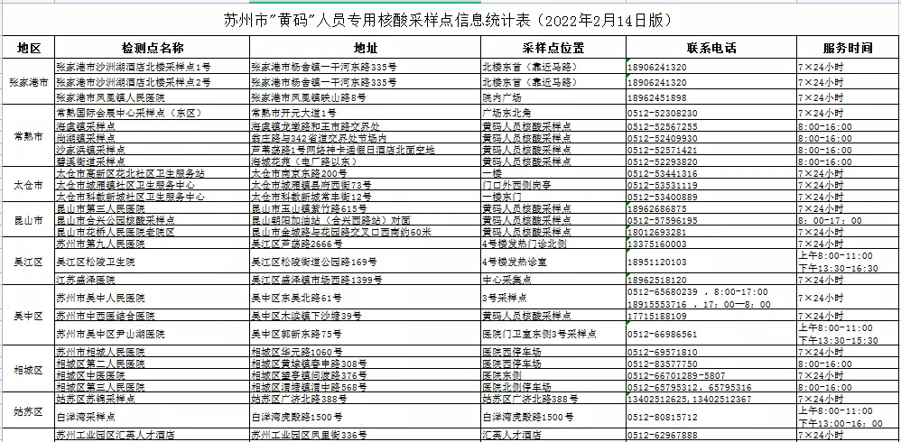 为及时有效地为符合黄码转绿码条件的人员提供服务,特设立“苏康码”黄码人员核酸检测专用采样点,具体点位详见附件。