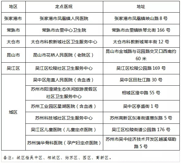 苏州市“黄码”人员救治定点医院名单