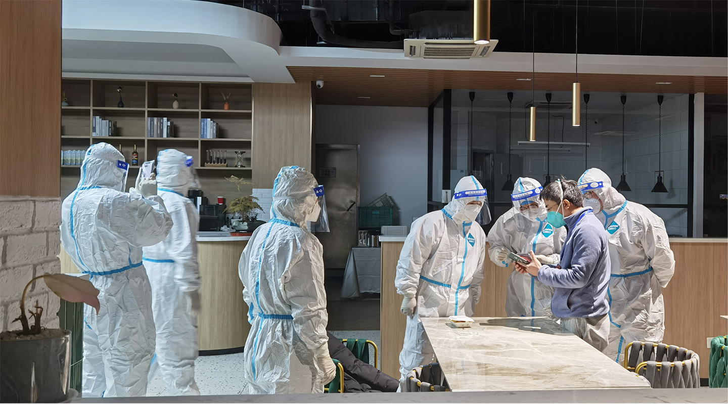 2月13日下午,得知实验室有确诊病例信息后,实验室立即启动新冠肺炎疫情防控工作应急预案,综合协调工作小组人员立即赶赴实验室,配合疾控、公安等部门做好现场人员封控、环境采样和消杀工作。同时,紧急动员各部门防疫联络员,当晚即按要求准时完成了密接人员信息统计和实验室其余全部人员防控信息统计。资产与条件部工作人员奋战一夜,于次日凌晨配合流调部门完成了29个项目组进口装备信息摸排统计工作。