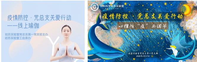 隔离不隔心,防疫不防爱。实验室在党的领导下,开展人文关怀。一是党总支建立了“实验室集中隔离人员抗疫沟通群”。关心被隔离的同志存在的环境不适应、心里焦躁等情况。隔离人员在群内分享隔离生活经验,互帮互助,相互鼓励;二是成立了“隔离人员临时党小组”,党员同志主动担当,配合实验室做好对集中隔离人员的心理疏导、安抚情绪,传递正能量,引导大家积极乐观配合政府防疫工作;三是党组织牵头,组织一批隔离期间的线上活动,发挥工会小组、兴趣协会作用,组织了“云瑜伽” “心理防‘疫’与调节”等 “疫情防控·党总支关爱行动”系列活动,丰富员工隔离期的工作和生活,调节员工情绪,汇聚起共同抗疫的正能量。